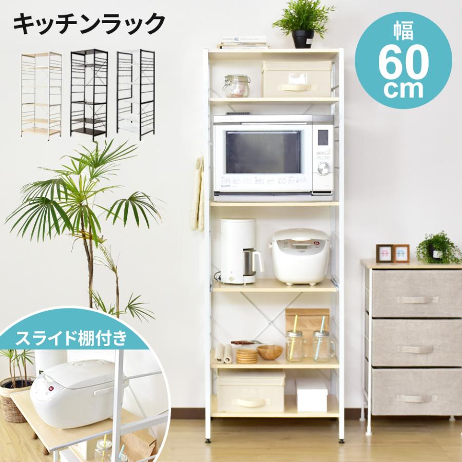 楽天市場 レンジ台 スチールレンジ台 レンジラック 大型レンジ対応 レンジボード 炊飯器ラック 電子レンジ台 食器棚 幅60cm キッチン収納 スライド 北欧 家具 白 ホワイト Emery エメリー ブラック ホワイト 台所 キッチンラック カップボード おしゃれ インテリア