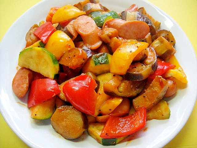 ズッキーニとナスと玉ねぎとトマトの炒め物 Stock Photo Adobe Stock